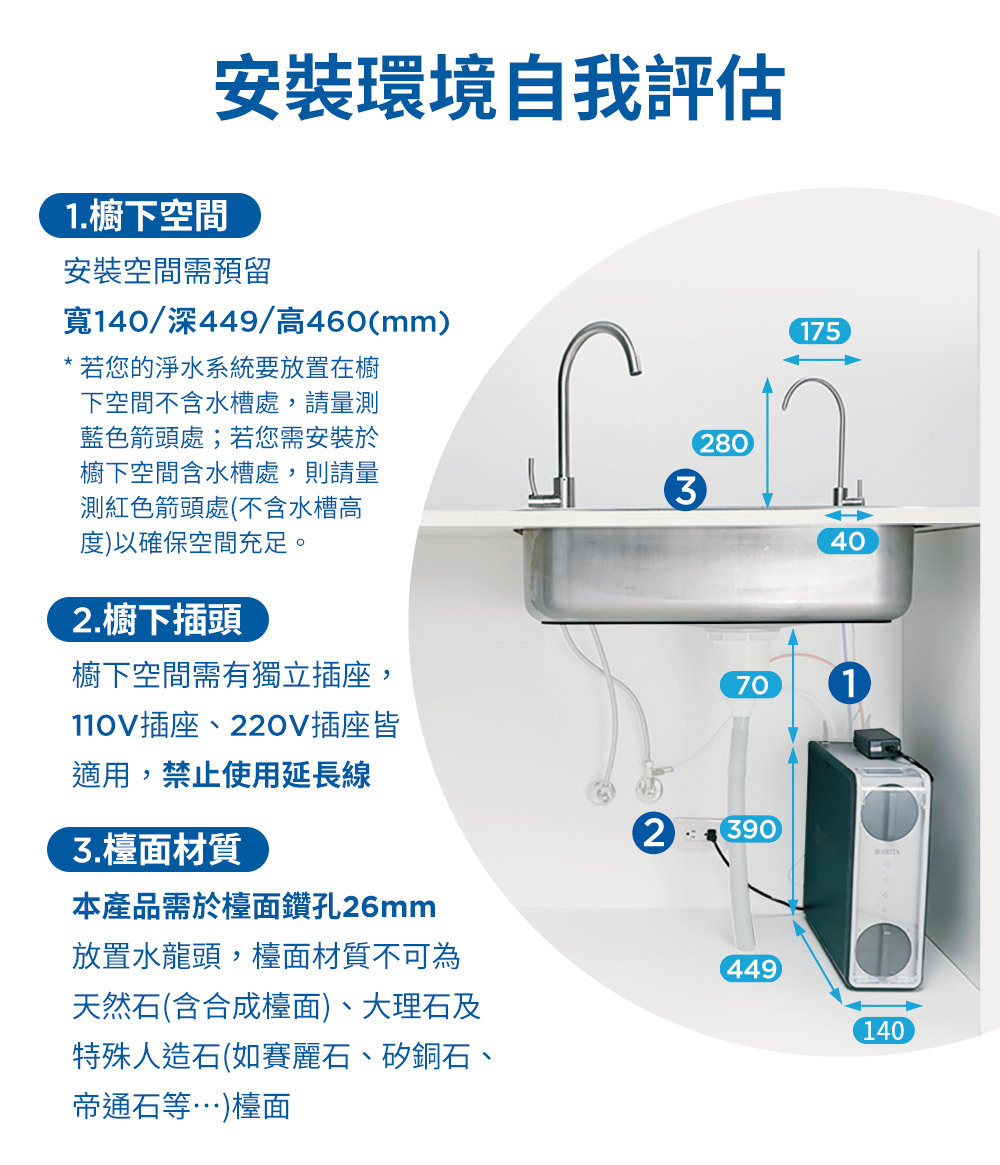 • 告別老舊儲水式 RO!免儲水桶,節省櫥下空間