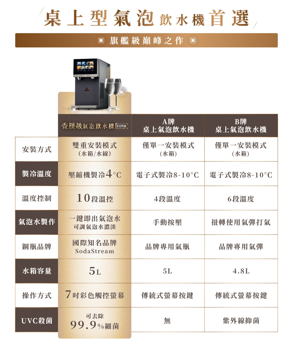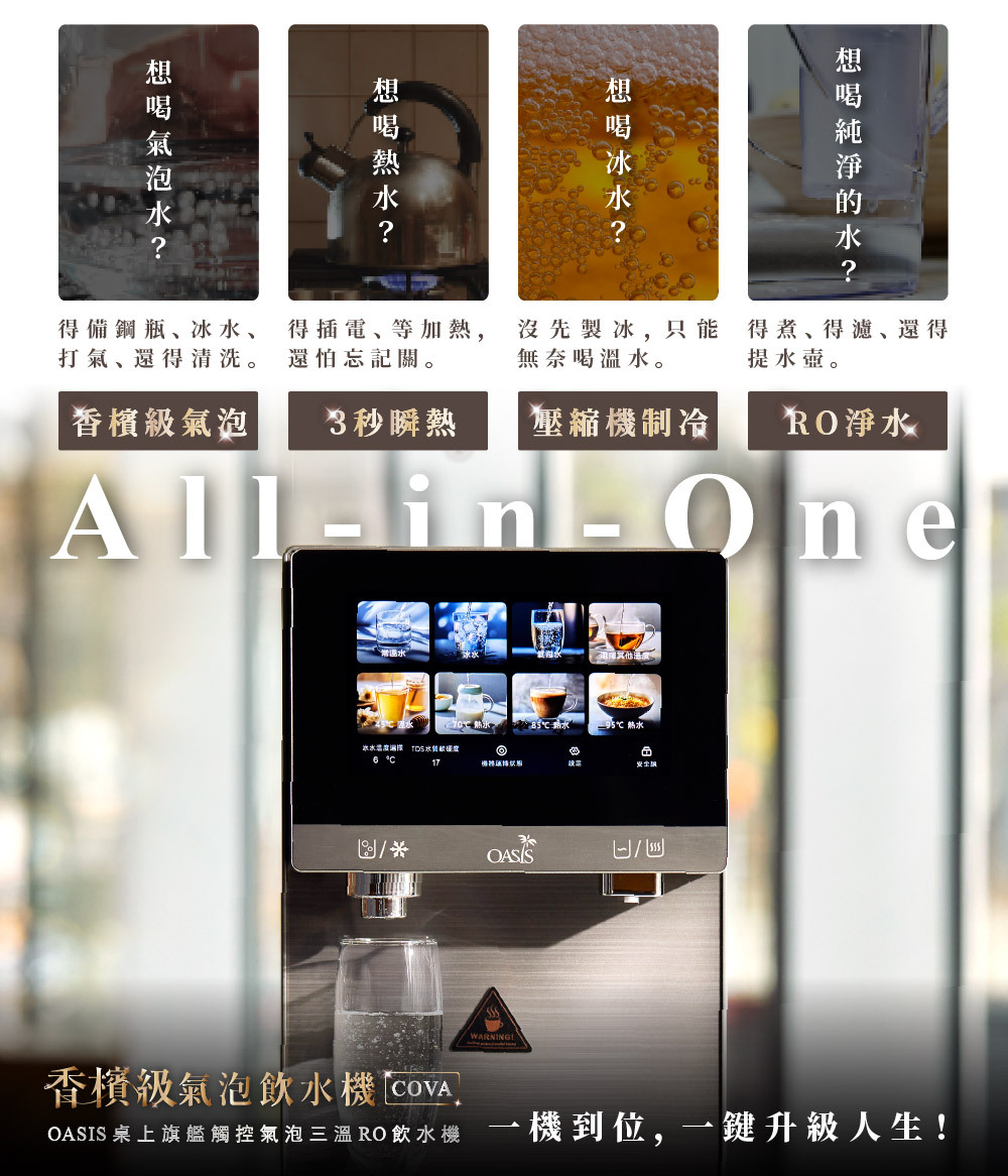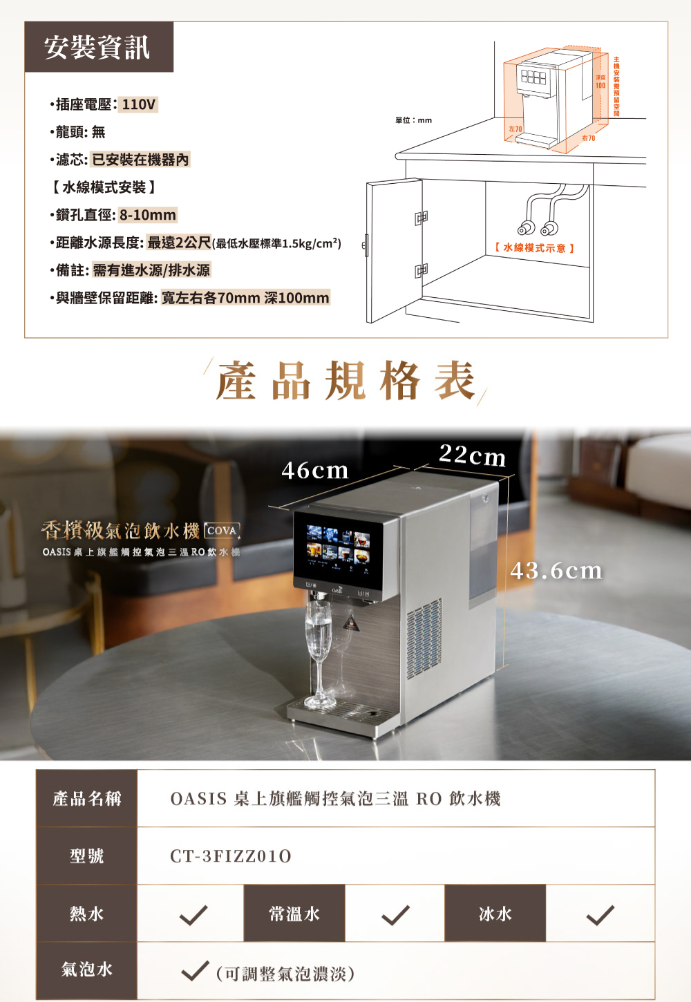OASIS COVA桌上旗艦觸控氣泡三溫RO飲水機 CT-3FIZZ01O