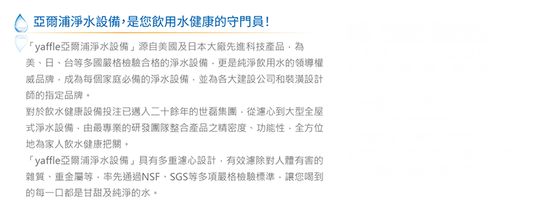 • 採用雙迴水路阻熱管中管設計,有效預防因龍頭導熱而燙傷的現象