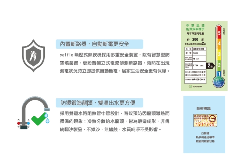 • 搭配智慧安全鎖,可避免家中幼童誤觸而燙傷,兩段開啟用水有保障