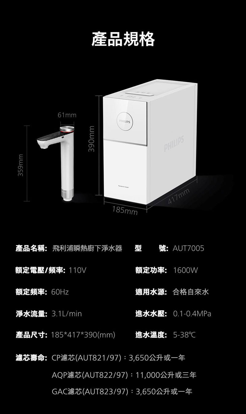 PHILIPS飛利浦 AUT7005小瞬靜 瞬熱廚下淨水器(淨熱一體)