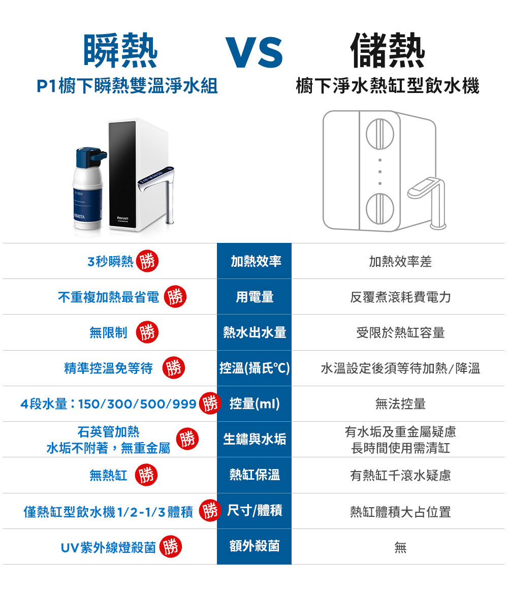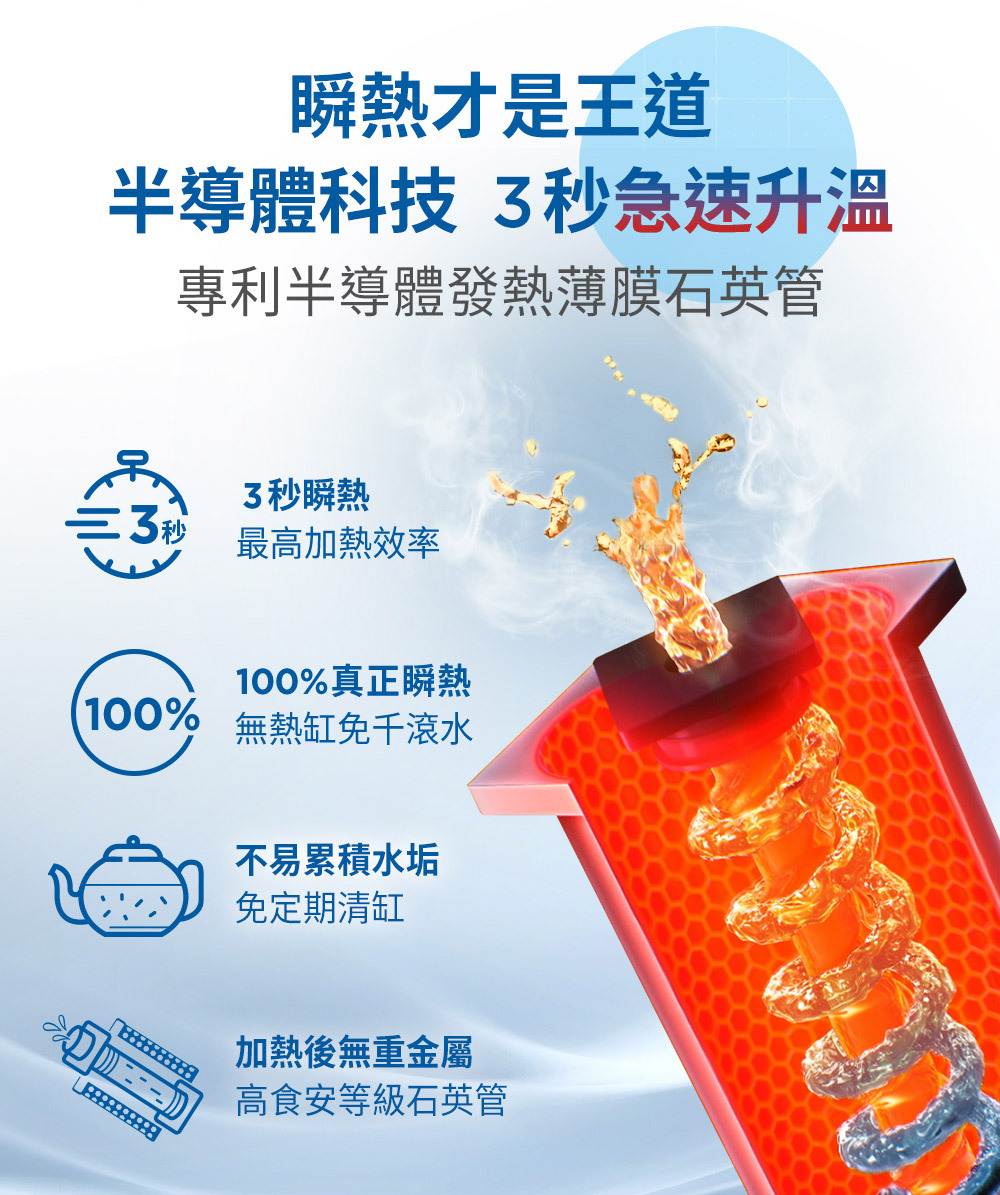 . 熱轉換率高、一鍵出熱水,3秒瞬間達100ºC
