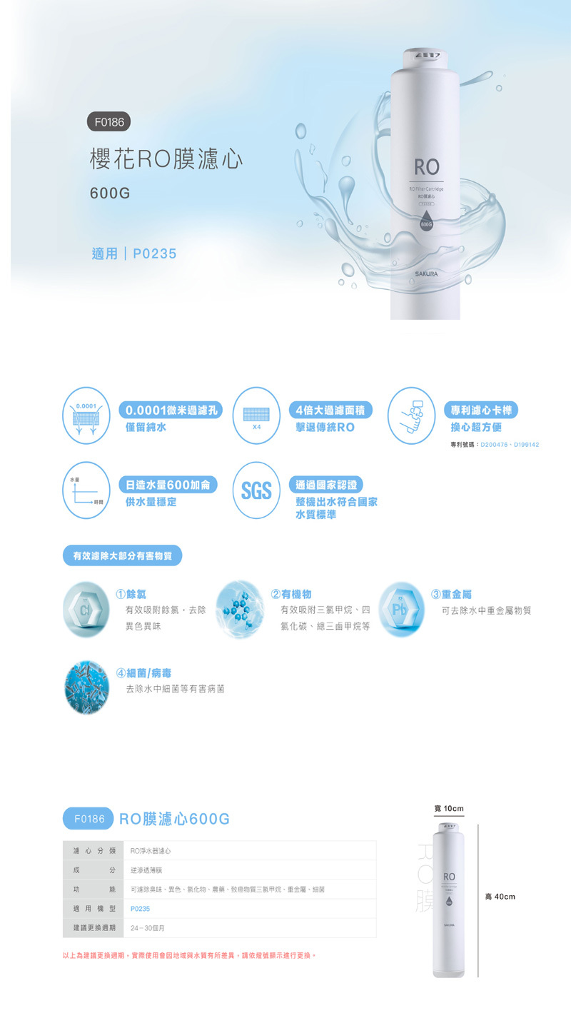 SAKURA 櫻花 F0186 RO膜濾心(適用P0235A.P0531.P0261.P0265.P0231)