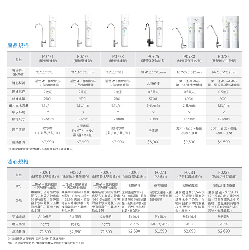 • 適用機型:P0775 單管強效除鉛型淨水器