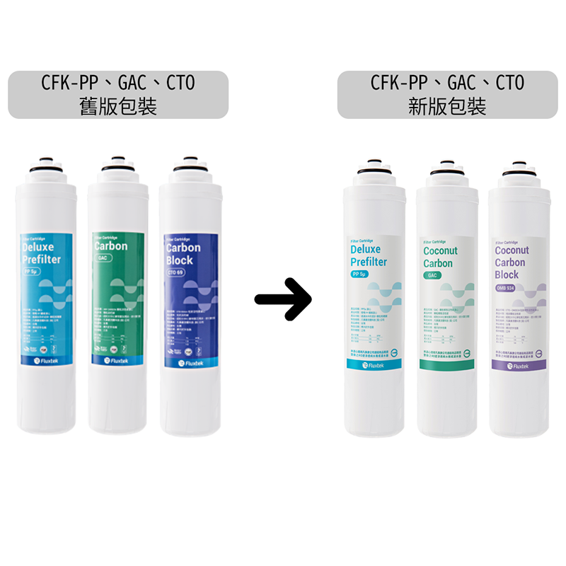 凡事康Fluxtek CG2-400G 九入組濾心 PP+ GAC+ CTO+CFK 200G RO + CNST 卡式後置椰殼活性碳濾心