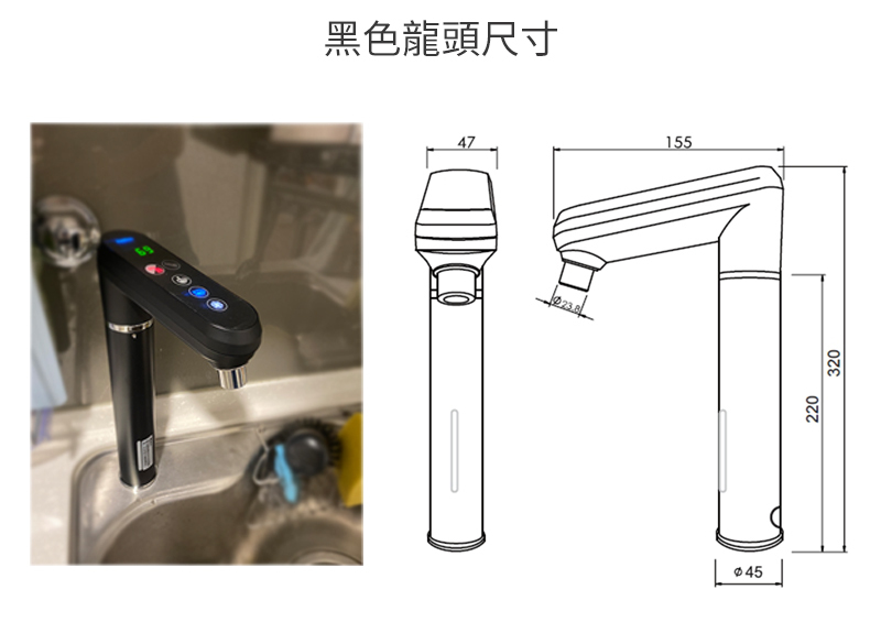 龍頭因安裝需求,需確認流理臺邊至少預留直徑 5cm 給鑽孔用。
