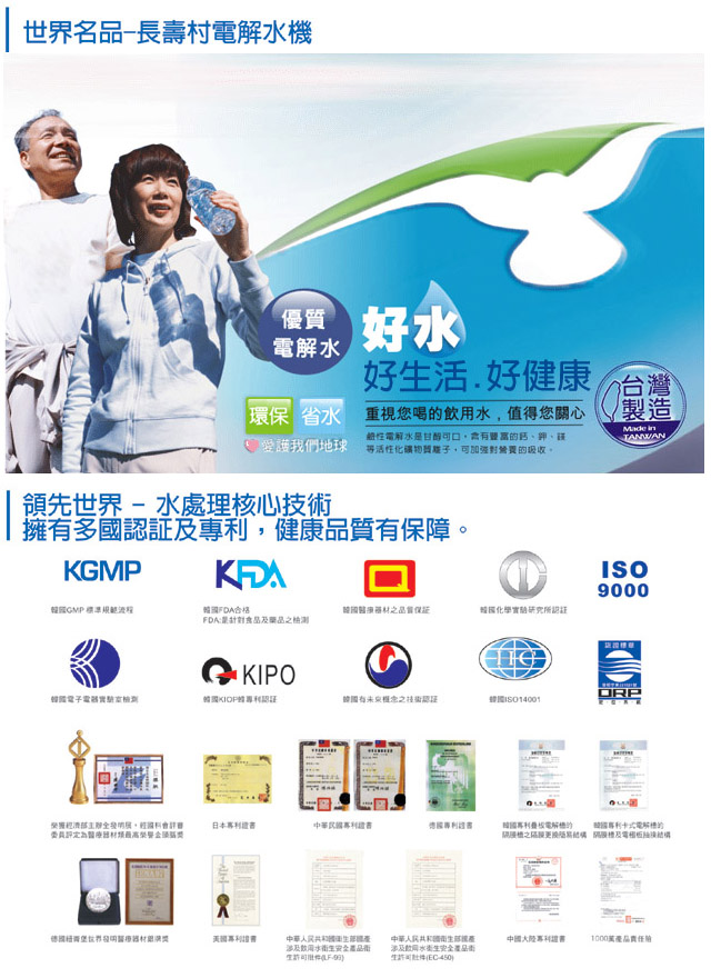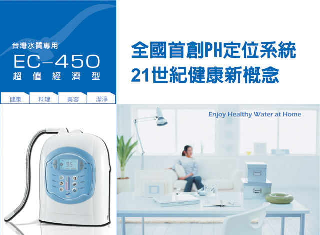 長壽村  EC-450 桌上型電解水機的淨水濾芯使用壽命約一年或12000公升。