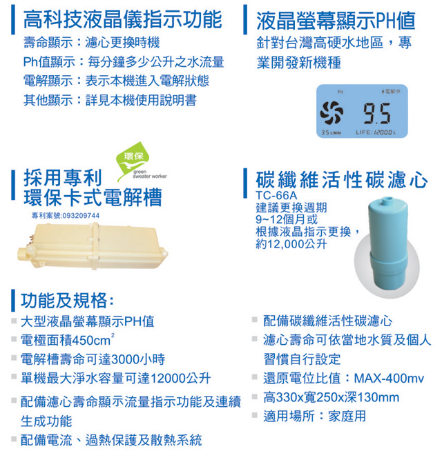 .淨水量高達12000公升、電解槽壽命長達3000小時